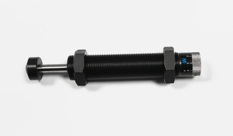 AD25~AD36系列緩沖器可轉(zhuǎn)動(dòng)末端調(diào)整旋鈕來調(diào)節(jié)緩沖器可承受的有效重量及撞擊速度,轉(zhuǎn)動(dòng)調(diào)整旋鈕對(duì)準(zhǔn)標(biāo)有讀數(shù)0-8的刻度,安裝完后,將機(jī)器運(yùn)行幾次,不斷轉(zhuǎn)動(dòng)調(diào)節(jié)旋鈕,知道能實(shí)現(xiàn)最佳的減速緩沖效果,如在吸震行程初始階段有較大的沖擊,可即刻從大到小方向調(diào)整。